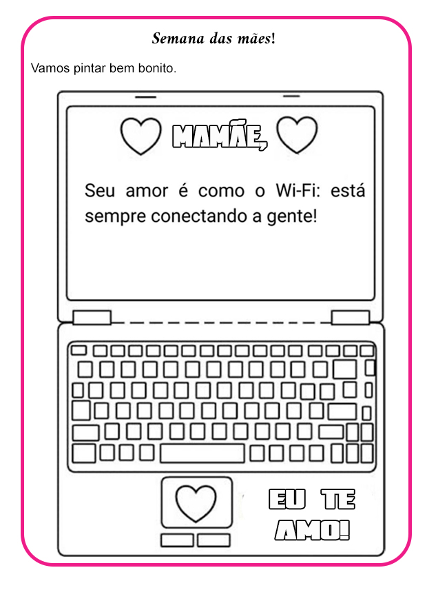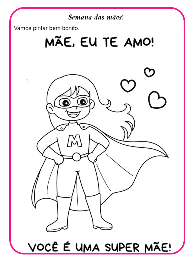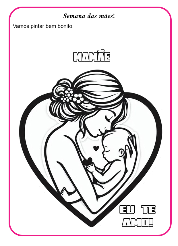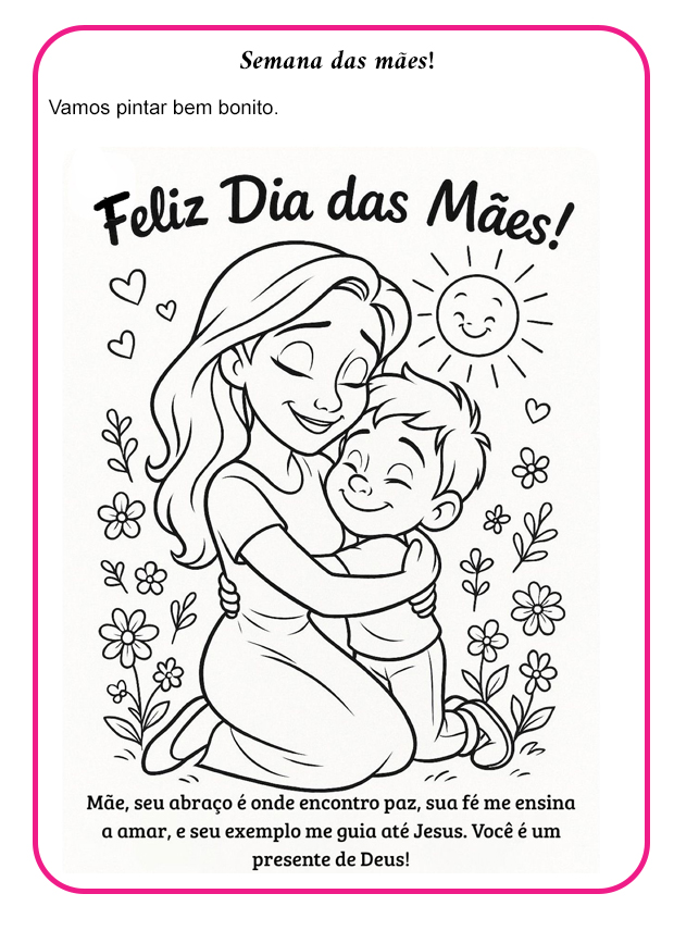 Além de colorir, o professor pode propor que os alunos escrevam uma pequena mensagem para suas mães, tornando o trabalho ainda mais especial.