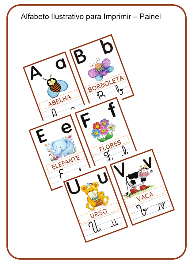 O Alfabeto Ilustrativo para Imprimir – Painel é um excelente recurso pedagógico para apoiar o processo de alfabetização na educação infantil e nas séries iniciais.