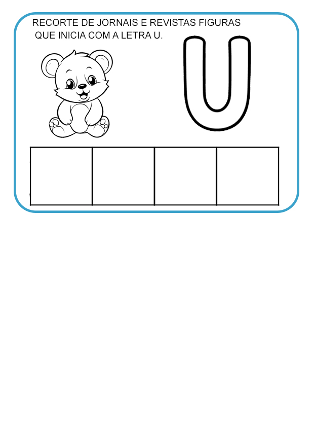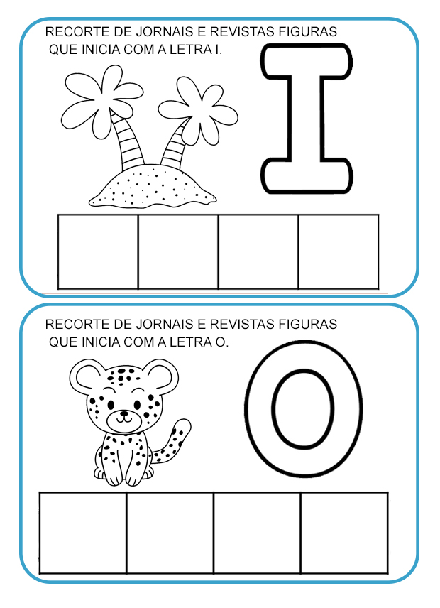 Nessa atividade, os alunos devem procurar em jornais e revistas imagens ou desenhos que iniciem com a vogal indicada na ficha, desenvolvendo a percepção sonora e a relação entre imagem e letra.