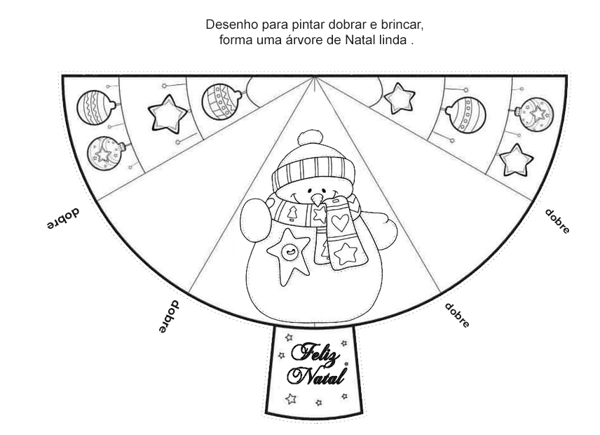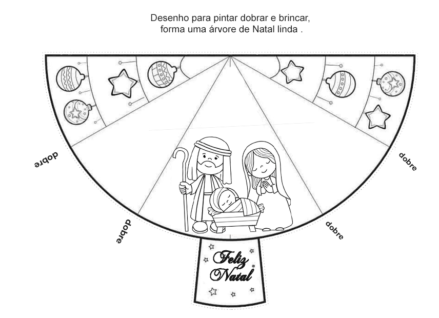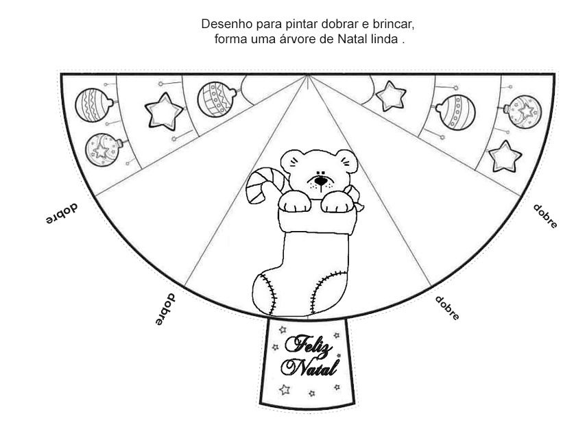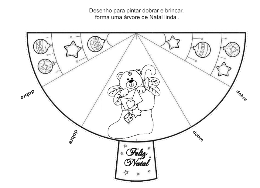 Este material especial traz um desenho para colorir que, ao dobrar as laterais, se transforma em uma linda árvore de Natal.