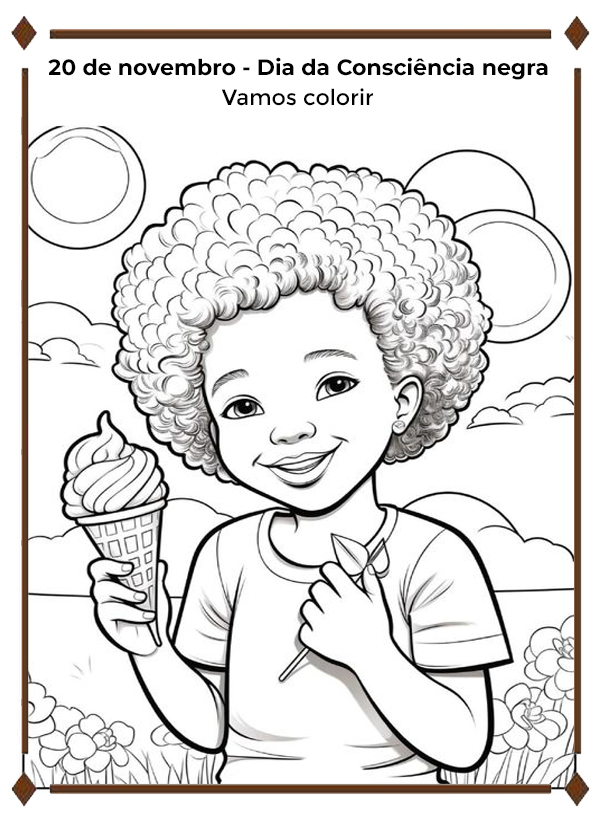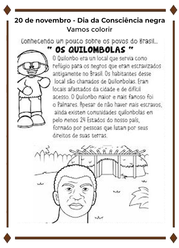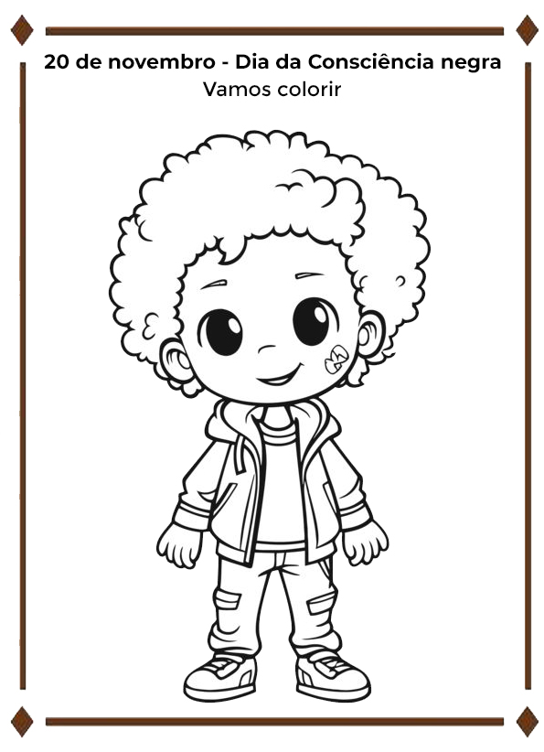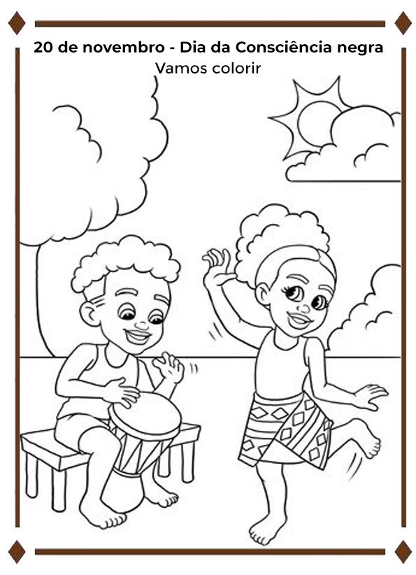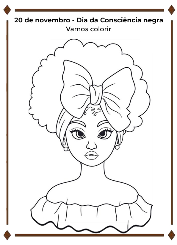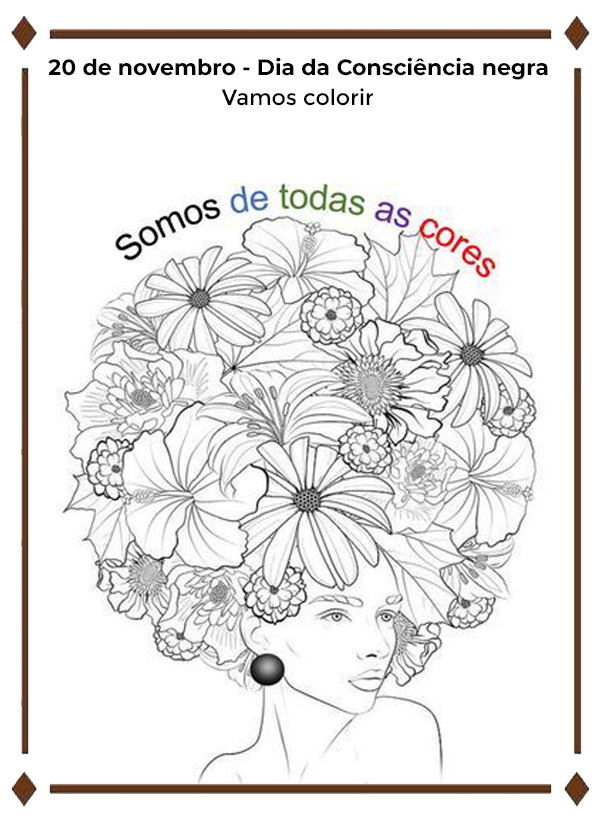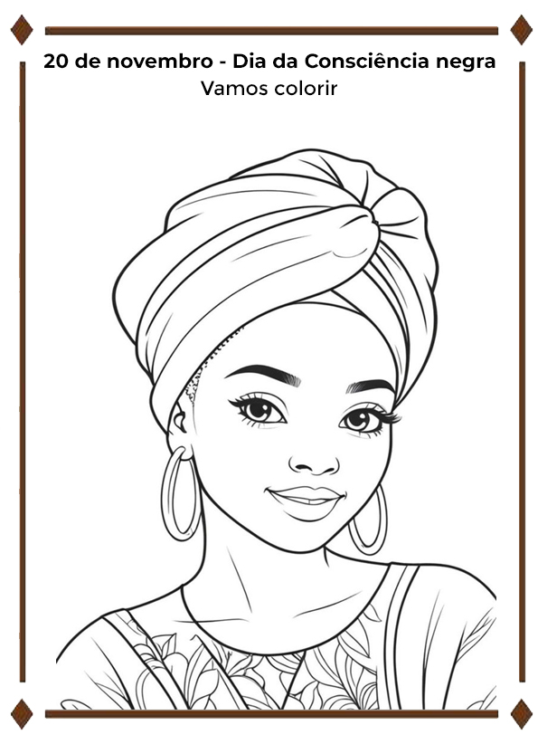 O professor pode usar os desenhos para decorar murais, montar painéis ou criar um cantinho especial da Consciência Negra na sala de aula.