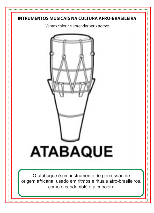 O Cartaz da Consciência Negra (instrumentos musicais) para colorir e imprimir é uma excelente atividade educativa para trabalhar a cultura afro-brasileira em sala de aula.