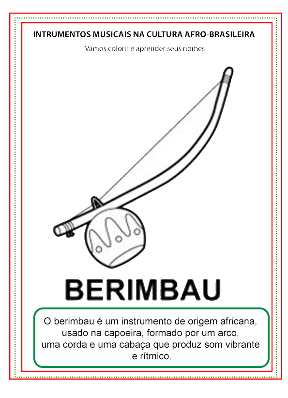 O Cartaz da Consciência Negra (instrumentos musicais) para colorir e imprimir é uma excelente atividade educativa para trabalhar a cultura afro-brasileira em sala de aula.