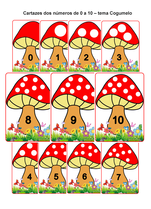 Os Cartazes dos números de 0 a 10 – tema Cogumelo são recursos pedagógicos encantadores e funcionais para a Educação Infantil.