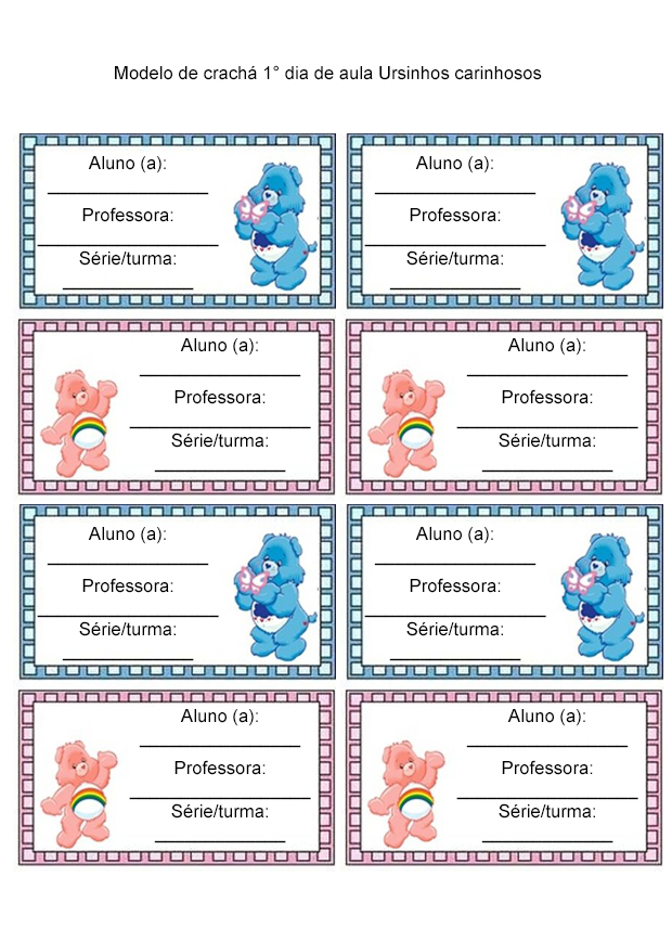 Crachá do 1º dia de aula – Ursinhos Carinhosos