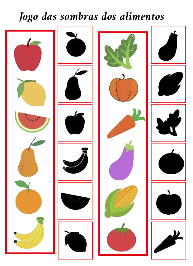 O Jogo das Sombras – frutas e legumes é uma atividade lúdica e educativa ideal para professores da Educação Infantil, pois estimula a atenção, a percepção visual e o raciocínio lógico das crianças de forma divertida.