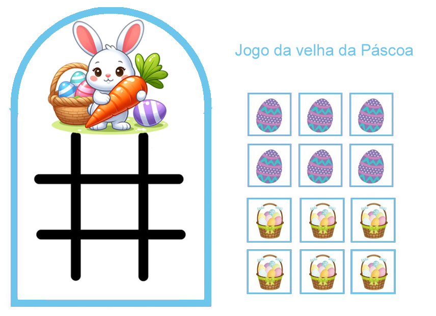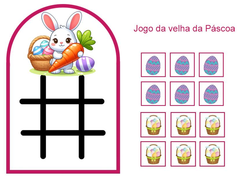 A lembrancinha “Jogo da Velha – Páscoa” é uma atividade criativa e educativa perfeita para crianças da educação infantil e séries iniciais.