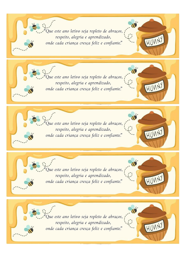 Fácil de imprimir e distribuir, é perfeita para o primeiro dia de aula ou para compor o kit volta às aulas, criando memórias afetivas desde o começo do ano escolar. 🍯📚