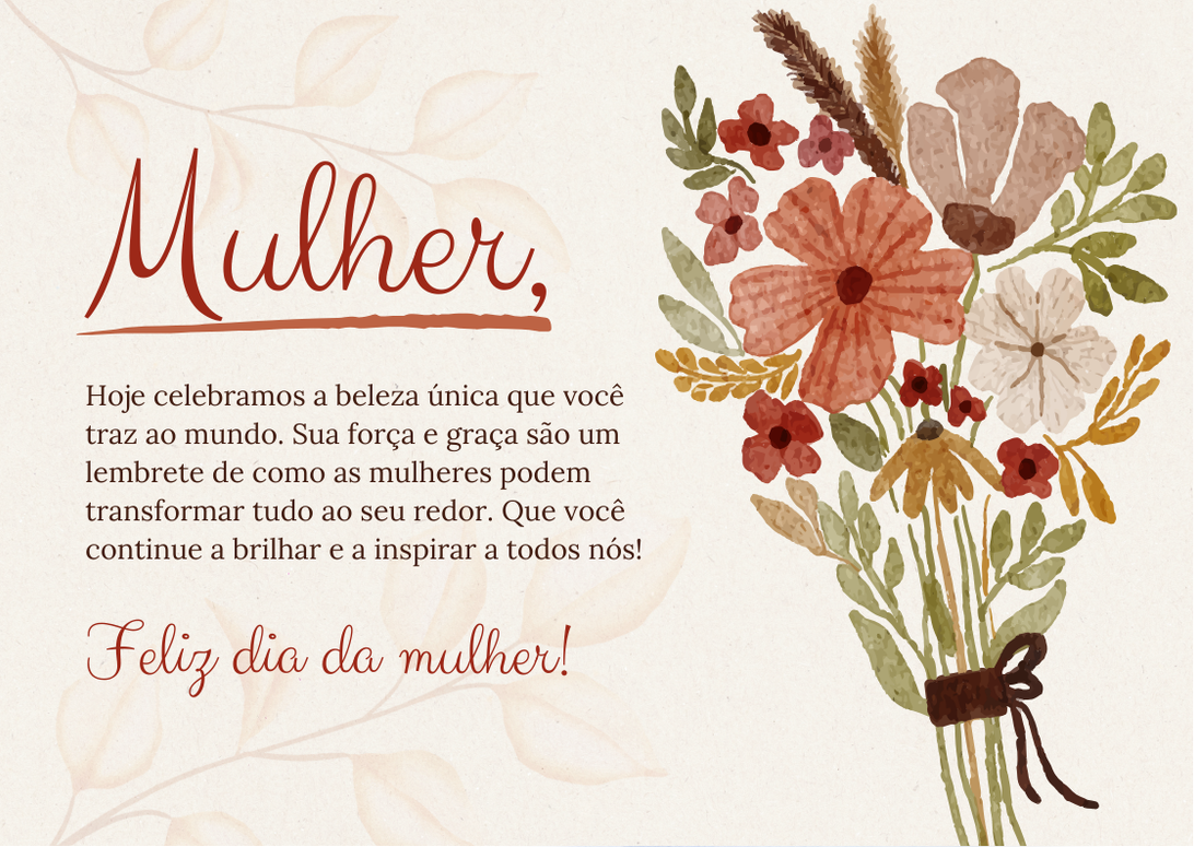 A Mensagem Dia da Mulher é uma forma simples e carinhosa de demonstrar respeito, admiração e gratidão por todas as mulheres.