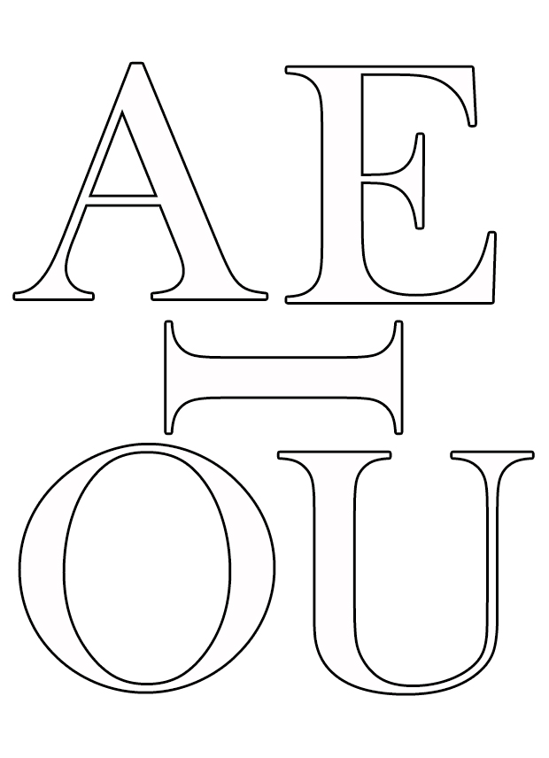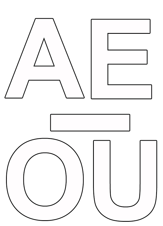 O molde das vogais maiúsculas para imprimir é um excelente recurso pedagógico para apoiar o processo de alfabetização na educação infantil e nas séries iniciais.