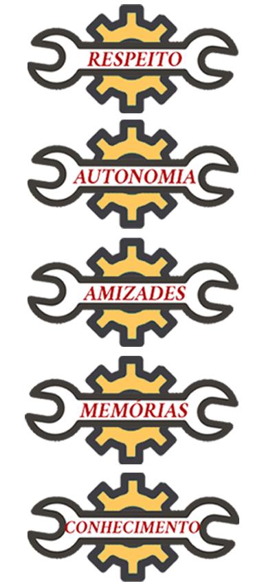 Cada chave traz uma palavra importante: Respeito, Memórias, Amizades, Autonomia e Conhecimento.