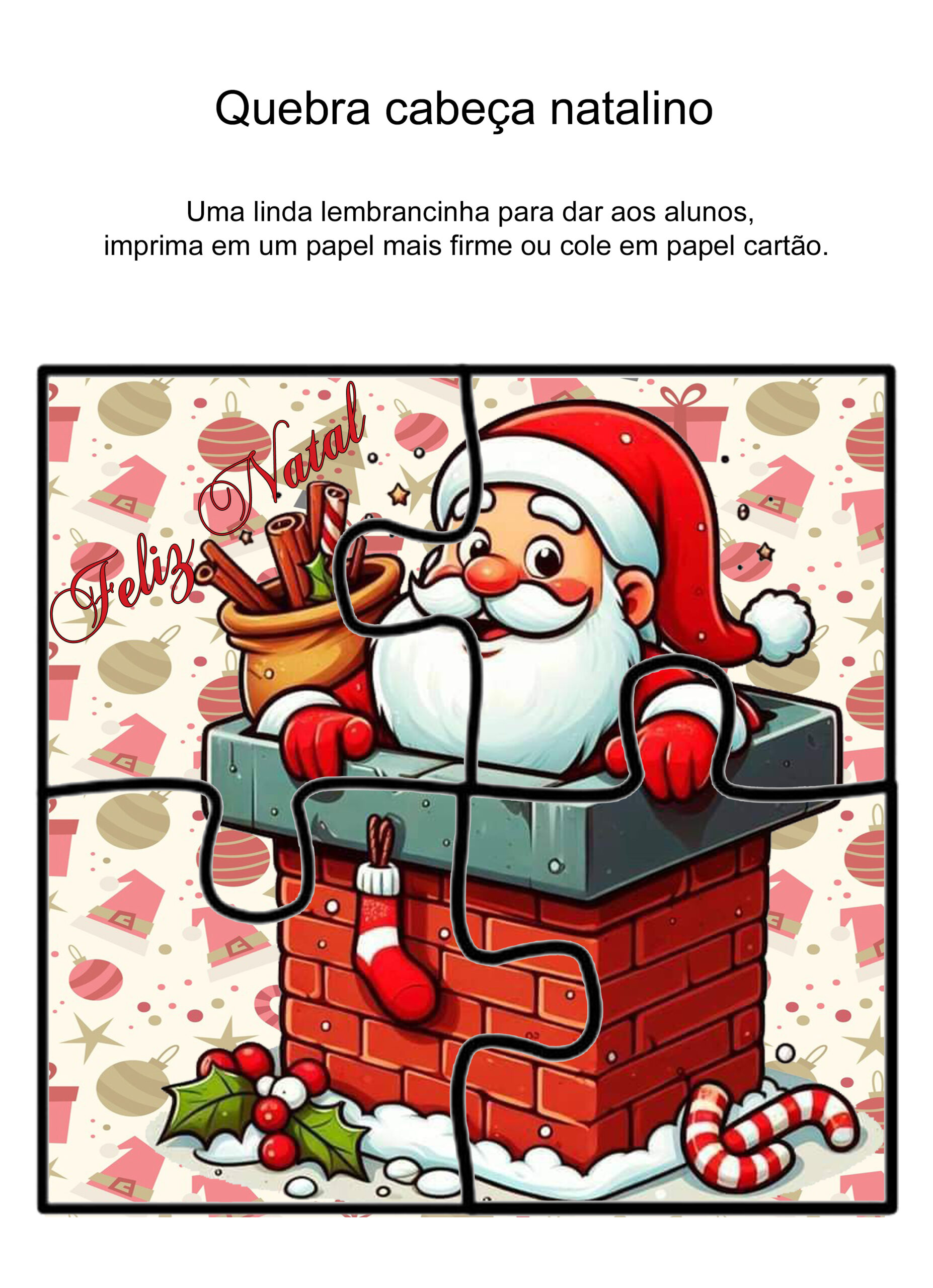Natal Quebra-cabeça Natalino (2) By Lita Maia - novembro 19, 2025 0 4 FacebookTwitterPinterestWhatsApp Dicas de impressão: Imprime no papel durinho ( vergê 180g ou o fotográfico 180 g) Quebra-cabeça Natalino